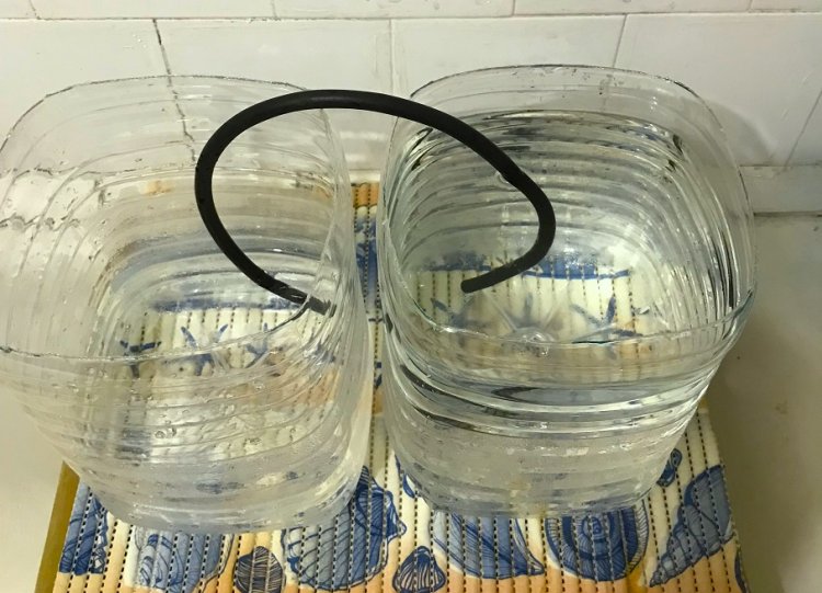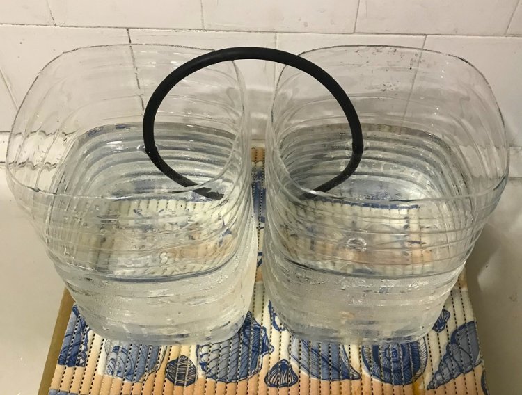 Четвёртая отличительная особенность. В УдПЦ2 используется сообщающийся сосуд, созданный из двух открытых бутылей и увеличивающий запасы воды в 2 раза. Причём запасы легко увеличить, например, в 3 или 4 раза добавляя третью и четвёртую бутыль!!!