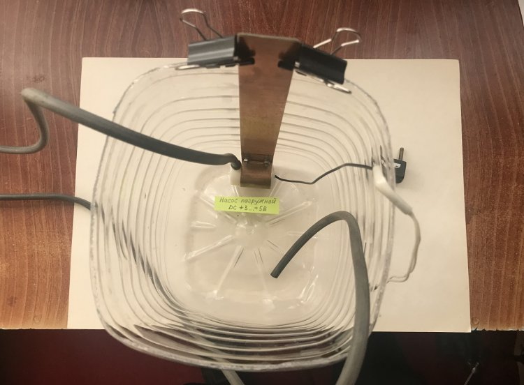 3). Погружной насос по паспорту может поднимать воду всего на 0,3 … 0,8 метра. Кабель насоса очень короткий (30 см). Придётся удлинять кабель и тщательно изолировать от влаги место его удлинения. Или наливать воду в бутыли на глубину не более 28 … 30 сантиметров.