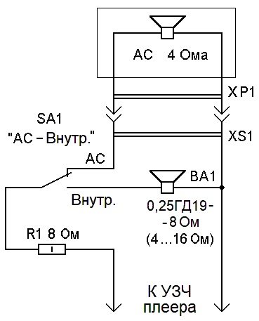 В задней части корпуса УдПЦ2 легко размещаются движковый переключатель SA1 и гнездо для подключения внешней АС (акустической системы).