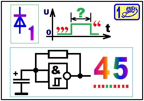 - дифференцирующей цепи C10 R5, формирующей короткий импульс положительной полярности по фронту (положительному перепаду) на входе цепи (на верхнем выводе С10);