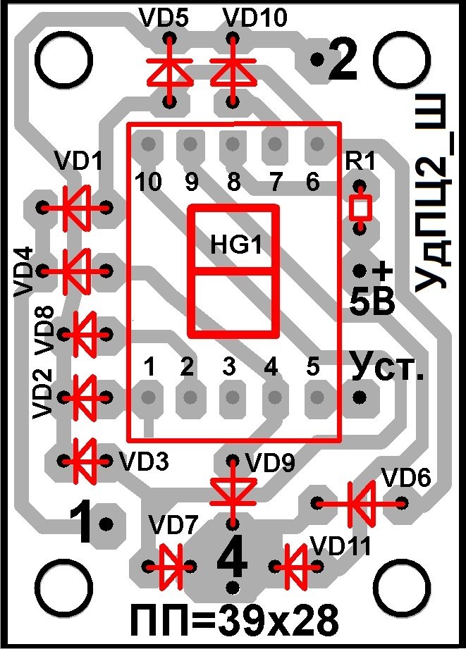 - семисегментного светодиодного индикатора HG1 «1, 2 или 4», имеющего красный цвет свечения и объединённые аноды.