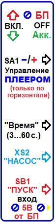 - комплексной нагрузки транзисторов VT3 и VT4, состоящей из насоса М1, диода VD6 защиты, керамического конденсатора С15 фильтра, срезающего импульсные помехи;
