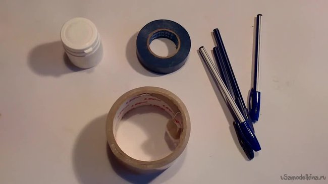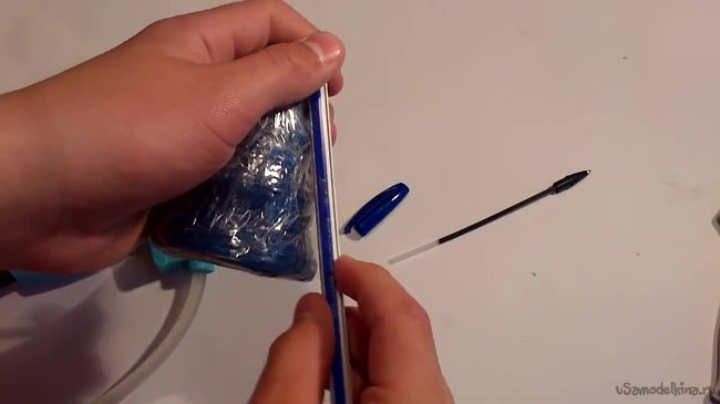 Теперь возьмите ручку, отмерьте высоту равную высоте конструкции, а лишнее отрежьте, предварительно извлекая все внутренности ручки.