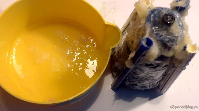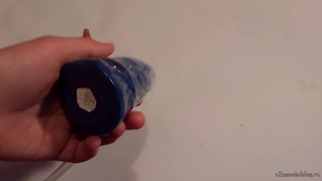 Затем, когда изолентой все обмотали, обмотаем еще раз нашу будущую соковыжималку скотчем, чтобы придать ей гладкости.