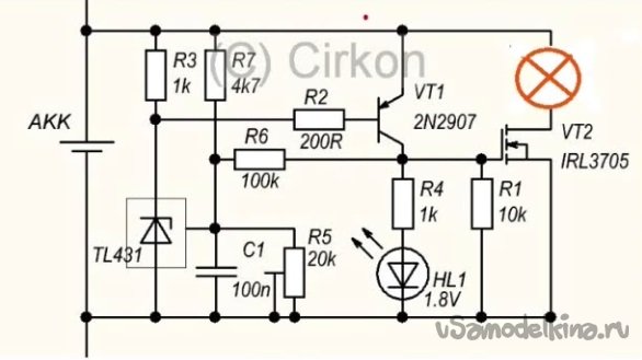 Была схема отключения аккумулятора при полном заряде, но я решил остановиться на варианте с балансиром, ну если кто не в курсе, это когда аккумулятор не отключается при достижении четыре и два десятых вольта, а сбрасывает излишки на нагрузку, в моем случае на лампу накаливания двенадцать вольт, не давая перешагнуть выставленное напряжение. Заодно проверить на сколько стабильно работает данная схема, есть желание в будущем собрать балансир на тридцать шесть – сорок восемь вольт.