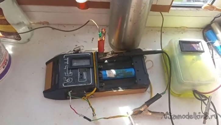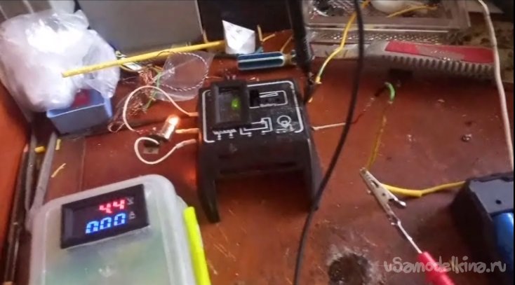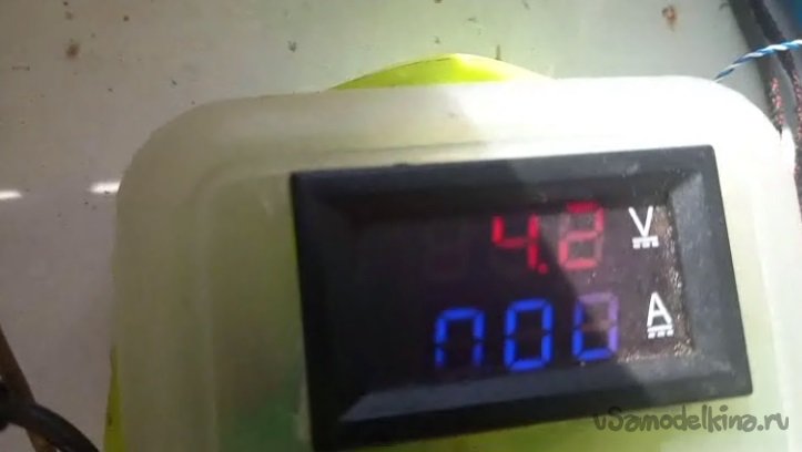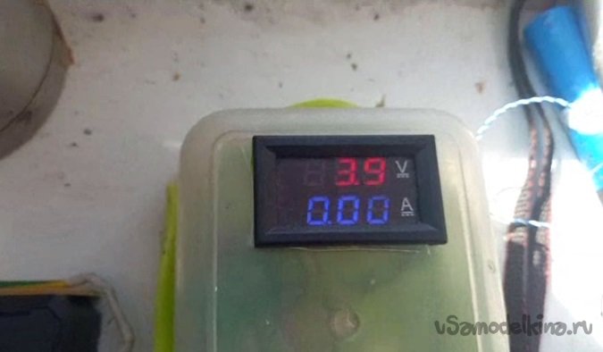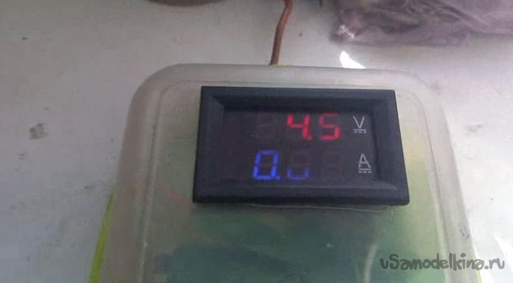 Попробовал подсоединить сначала аккумулятор на два ампера и подзабыл о нем, когда вспомнил, в него затопталось четыре и пять десятых вольт. Это уж явный перебор.