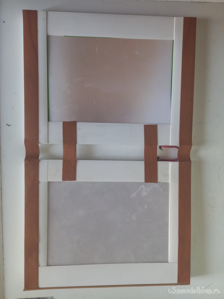 Проект утвержден, пора браться за работу. Первым делом надо как ни будь панели облагородить. Для этого я применил «L» профиль ПВХ, чтобы обвернуть панели по контуру. Заднее наполнение сделал из оргалита и листового пластика.
