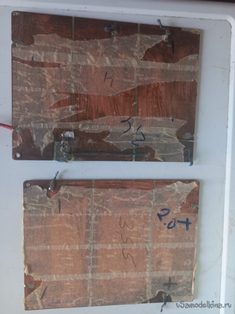 Облицованные панели приобрели товарный вид, а открывать их для работы решил как книжку, для чего применил окантовочный пластик для ДСП. К выводам панелей припаял «крокодильчики», мало ли, что он еще захочет подключить к панелям. В принципе пожелание выполнено, теперь можно заняться бонусами.