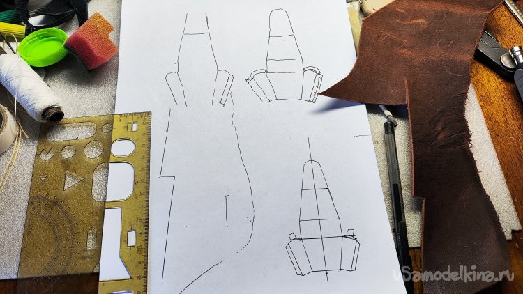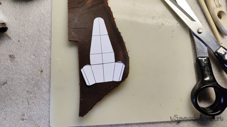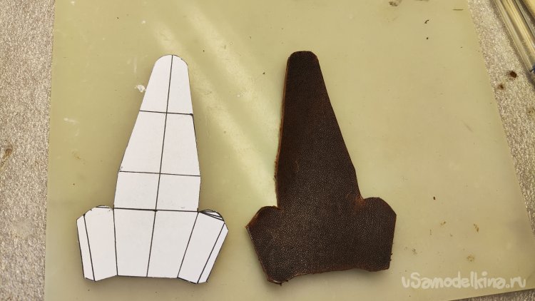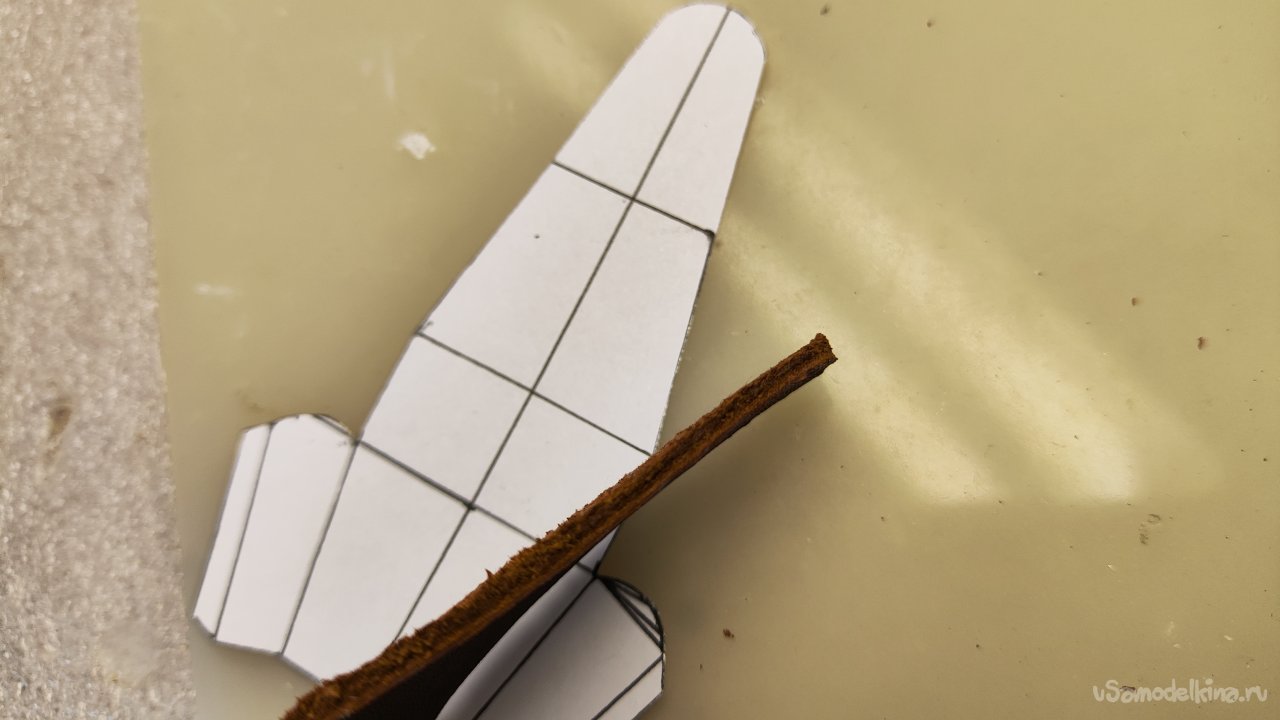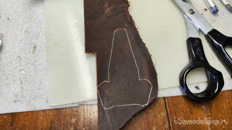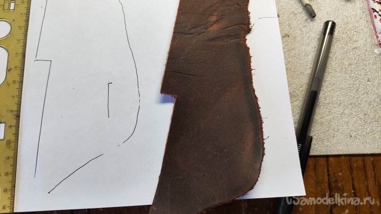 Как раз есть подходящий кусок кожи. Приложил к рисунку, убедится, что кожи хватит.