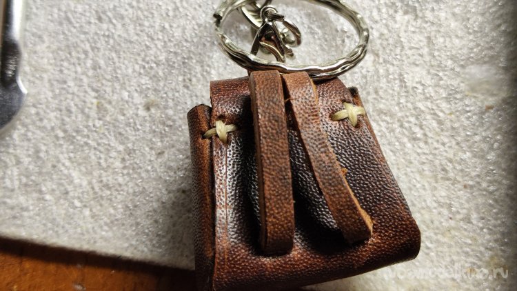 Понравилась мне одна модель брелока в форме маленького рюкзачка. Красивый вид, объемность, примененная кожа оранжевого цвета побудили меня повторить сей шедевр.