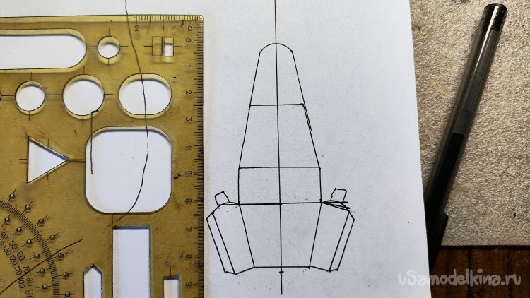 Такого оттенка кожи у меня нет, поэтому будем делать из того, что есть. Для начала набросал примерный чертеж, затем более подробный. Понял, что надо брать линейку и рисовать. Получилось вот так.