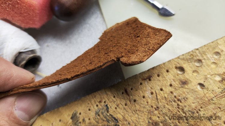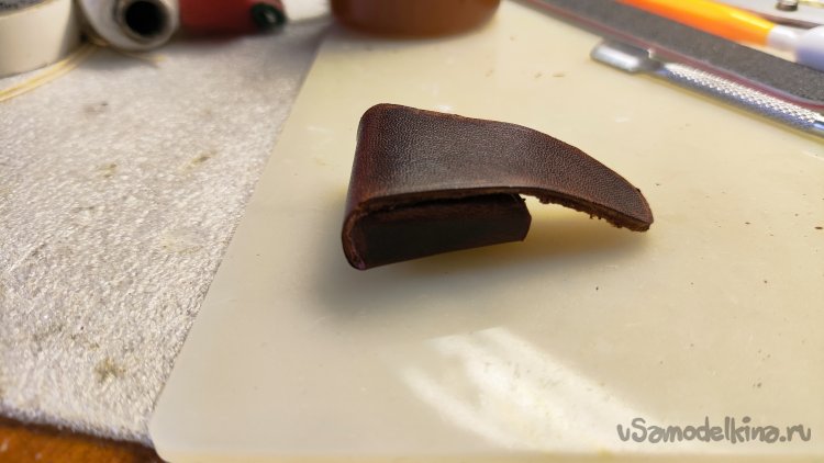 Толщина кожи достаточно толстая. Для сборки так не пойдет. Необходимо срезать слой кожи, чтобы она хорошо гнулась в местах сгиба.