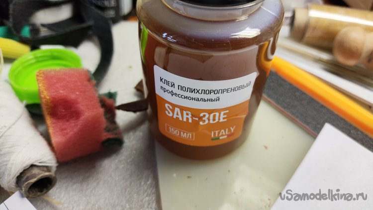 Снова покрываю детали клеи и даю клею подсохнуть.