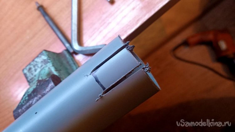 Труба для экрана. То, что обычно описывают в Интернете, мне не понравилось, дерибас из двух труб, одна в другую, подшипники покупают, шуруповёрт туда вклеивают. Зачем так всё усложнять? Решил я просто трубу купить. Начал с самой дешёвой, сантехнической, Д 50, за 170 рублей. Если не лень будет, потом напишу про неё отдельную самоделку, тоже имеет право быть как вариант.