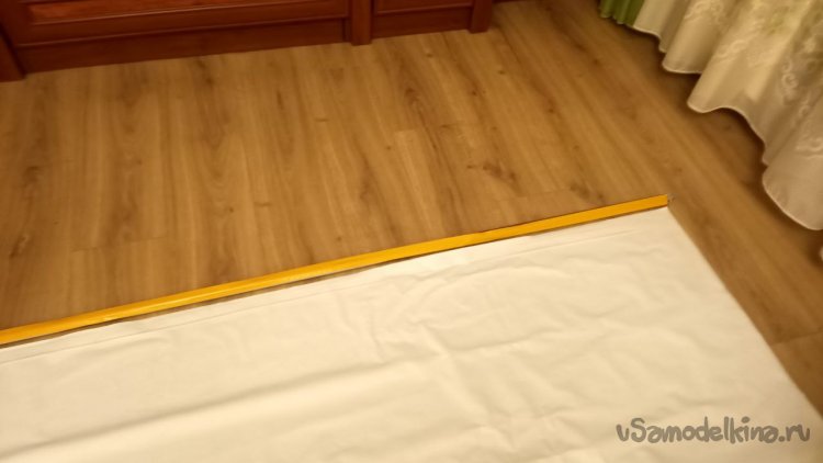 Экран. Начинал с пододеяльника. Удивительное дело, даже стоя сильно сбоку от оси изображения, проектор мне позволил ручками вытянуть трапецию в почти ровный прямоугольник. Единственное приемлемое место размещения проектора это старый телевизор. Чтобы не падал, пришлось его прикрутить саморезами к телику. В этом раскладе размер проекции примерно 2,5 х 1,5 метра. Отправляемся в строительный гипермаркет и сканируем глазами подходящий и недорогой материал. Баннерную ткань, из которой обычно все делают экраны, я оставил на крайний случай, так как она тяжёлая. И тут попадаю в отдел клеёнок. Бинго! Самая дешёвая оказалась почти без рисунка и белая, 299 руб за погонный метр при ширине 1,4 метра. Проецировать будем на заднюю часть, она мягкая и матовая в отличие от лицевой стороны. Дома попробовал – то, что надо.