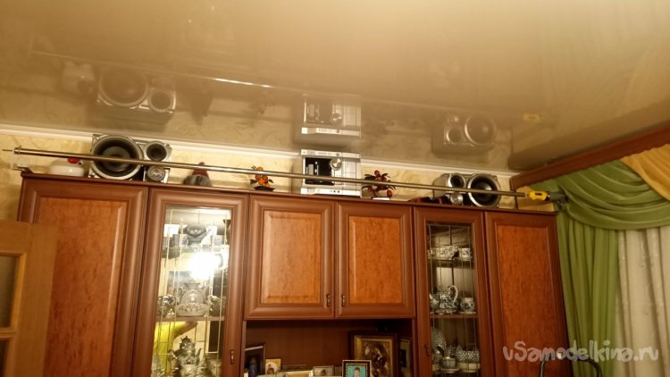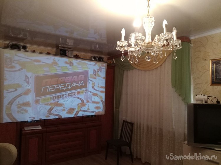Предыстория. Несколько лет назад, путешествуя в Крым на машине, проезжали мы через Краснодарский край и останавливались на ночёвку у родственников. У них свой дом, и отдельная комната выделена под кинозал. Там, как в настоящем кино комната площадью около 40 кв.м проектор, настоящий экран, музыка и все дела. Фильмы смотрели с ДВД. Впечатления были вау! И захотелось мне такое же себе домой. Начал потихоньку ныть жене про своё желание, но получил жёсткий отпор: комнаты лишней нет. Я возразил, что сделаю экран на стенку. Жене не понравилась идея, что за майками просто так не залезть, и вообще её мечта это новый шкаф-купе на месте старого, и из любви ко мне можно сделать его белого цвета, вот тебе и экран готов. Цена вопроса около 150 000 рублесов. Я ойкнул и пошёл придумывать выход. И вот всё сложилось, у меня случился День рождения, заработал немного пиастров и даже жена дала отмашку на проектор, но с условием, что доступ в шкаф будет несложным. Получив это техзадание, сел курить интернет. Удивительно, но все подобные самоделки как под копирку, один и тот же проект. Выжав из него лучшее, я принялся колдовать над своим.