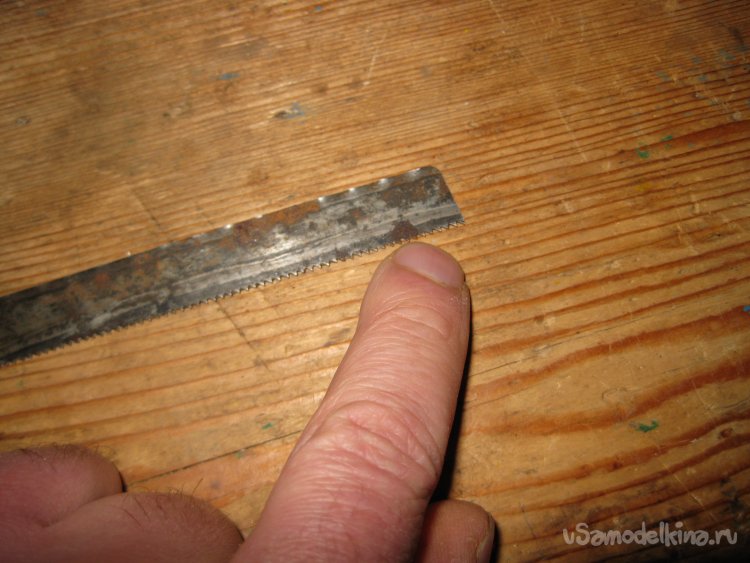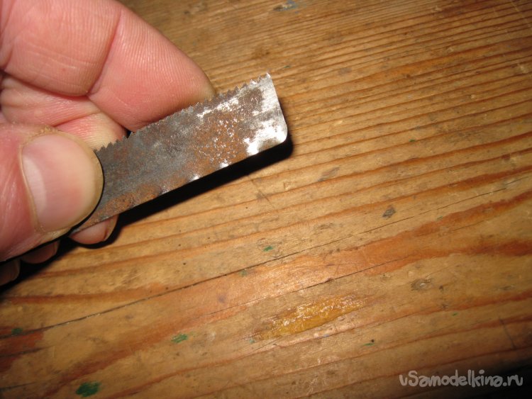 Кроме того, хочу отметить, что нет необходимости использовать абсолютно новое полотно от ножовки по металлу. Можно взять полотно уже использованное, главное, чтобы зубчики на нем были достаточно острыми и не сильно сточенными. Кроме того, можно использовать уже сломанное полотно, например, с отломанным концом.