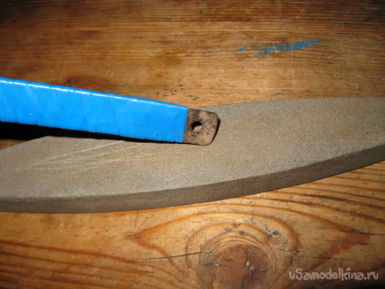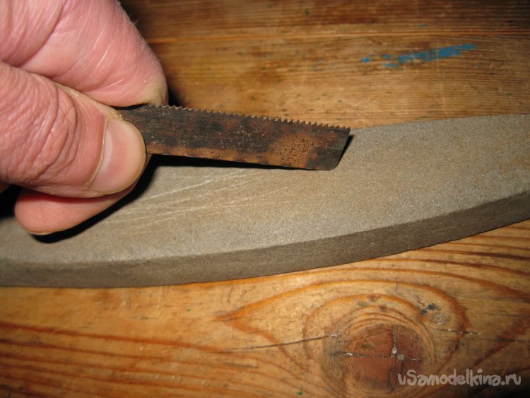 Ну, а после этого, останется только притупить острые углы на полотне, чтобы не поранить им руки. Сделать это можно при помощи простого абразивного бруска.