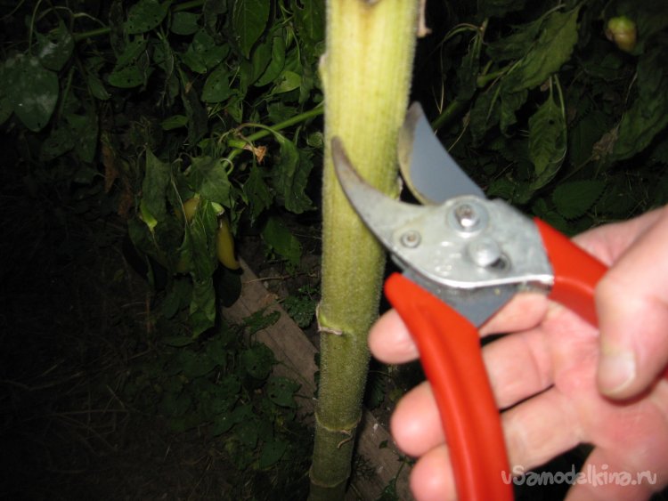 И даже толстые стебли огурцов и помидоров, которые нужно убирать по осени, также можно удобно срезать при помощи нашего инструмента.