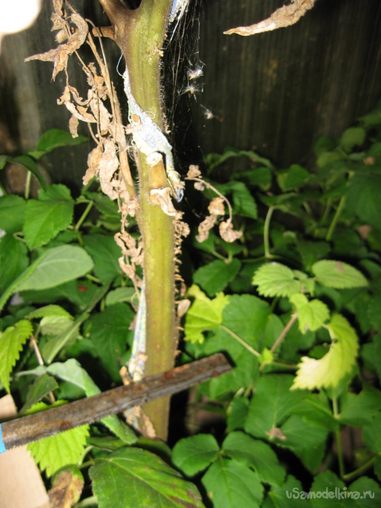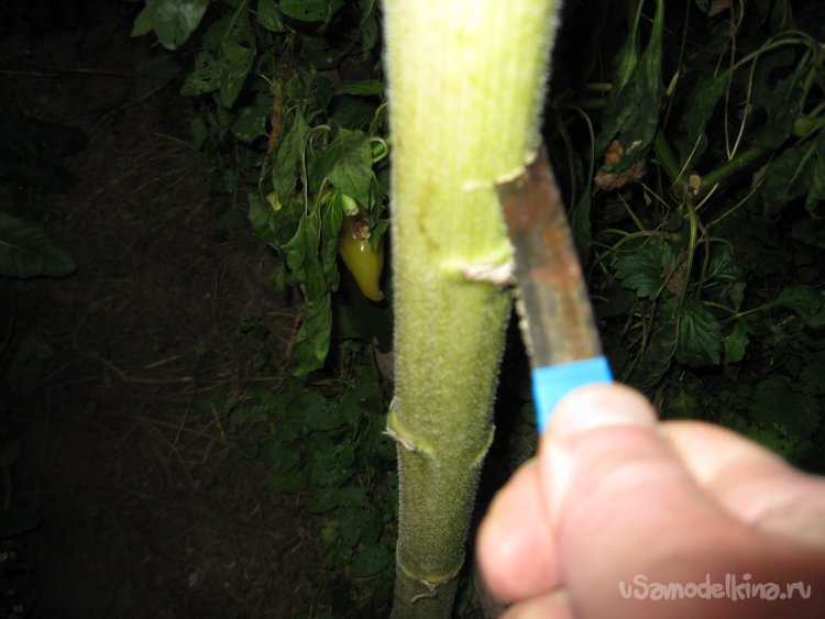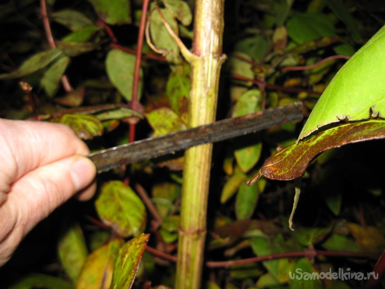 Как видно, секатором к такому толстому стеблю просто невозможно подобраться.