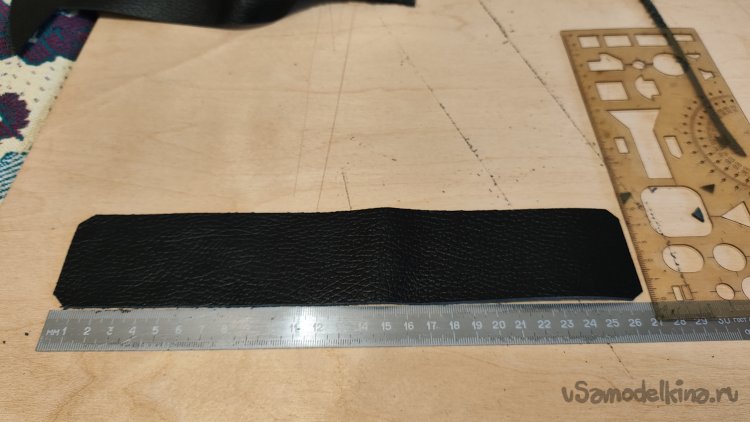 Отобрав нужный кусок, отрезаю от него полосу шириной 40 мм и длиной 270 мм. Длина взята с запасом, чтобы впоследствии укоротить браслет по необходимому размеру.