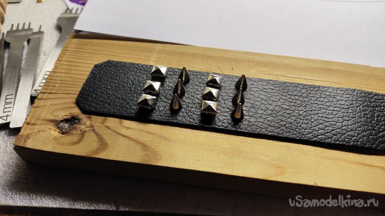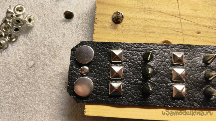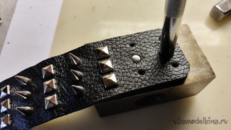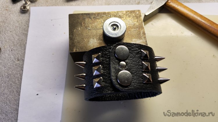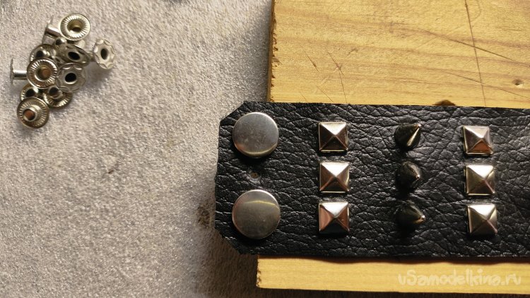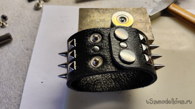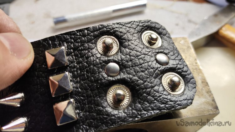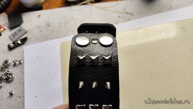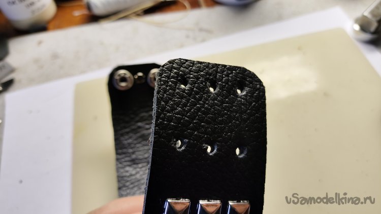 Фурнитура установлена. Примерил браслет и решил немного укоротить. Пробил отверстия под кнопки.