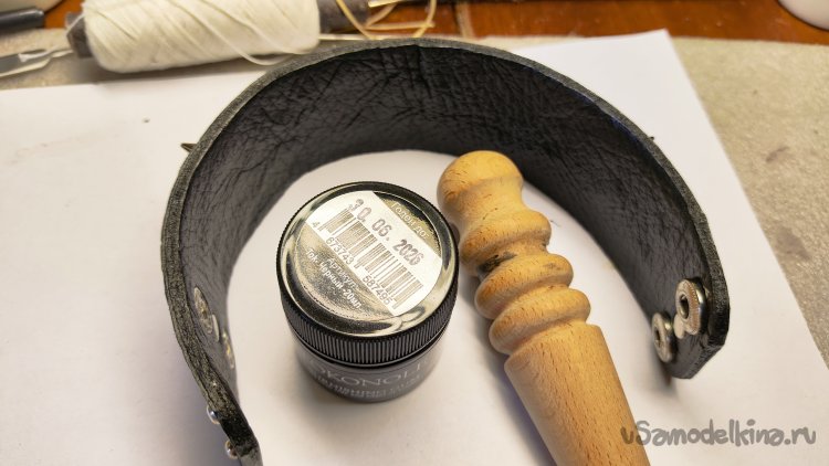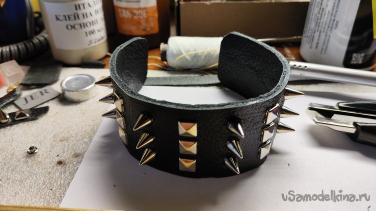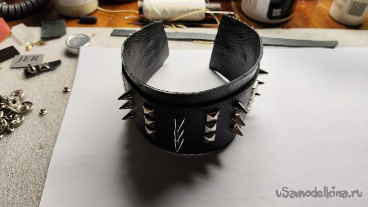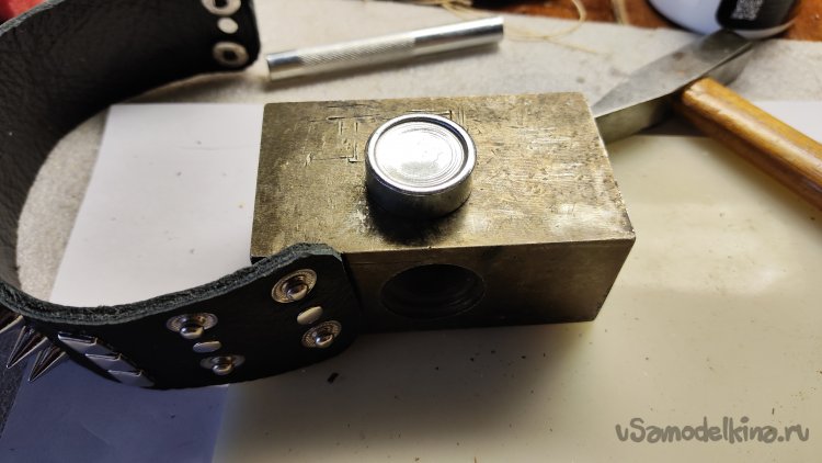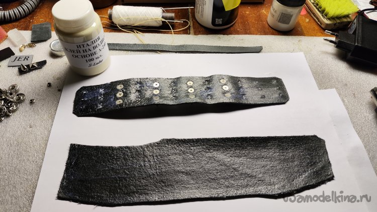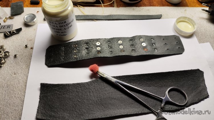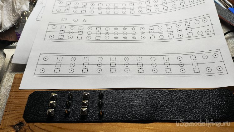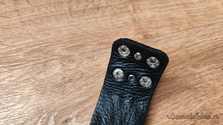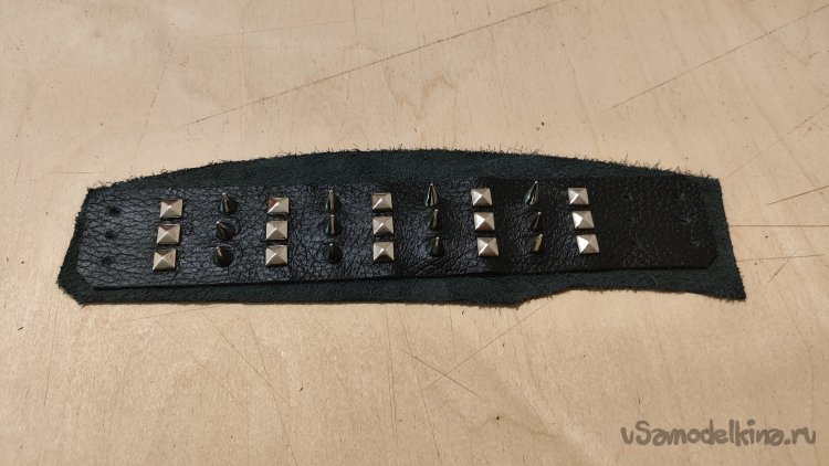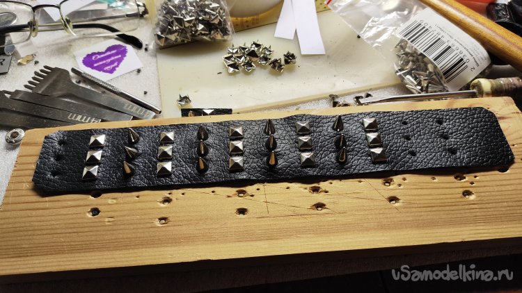 Фурнитура установлена. Примерил браслет и решил немного укоротить. Пробил отверстия под кнопки.