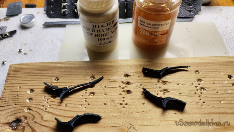 После подсыхания клея ножницами обрезал лишнее. Хотел воспользоваться резаком, но кожа достаточно мягкая, побоялся испортить, тем более резак может вязнуть в клее, ножницы немного вязли.