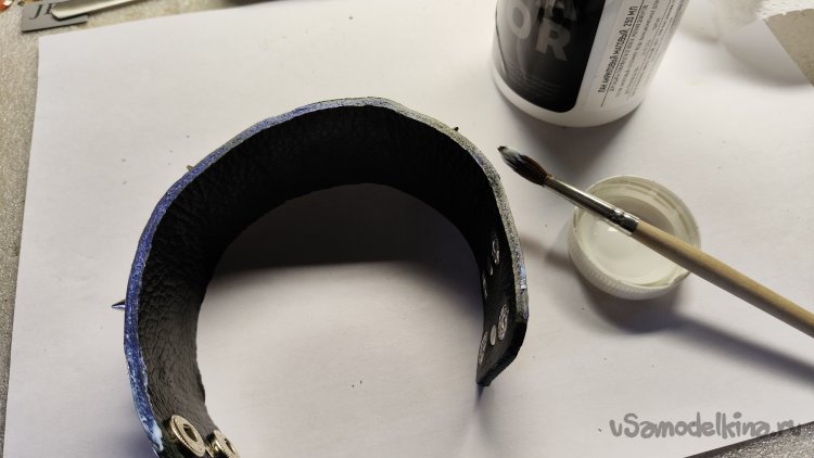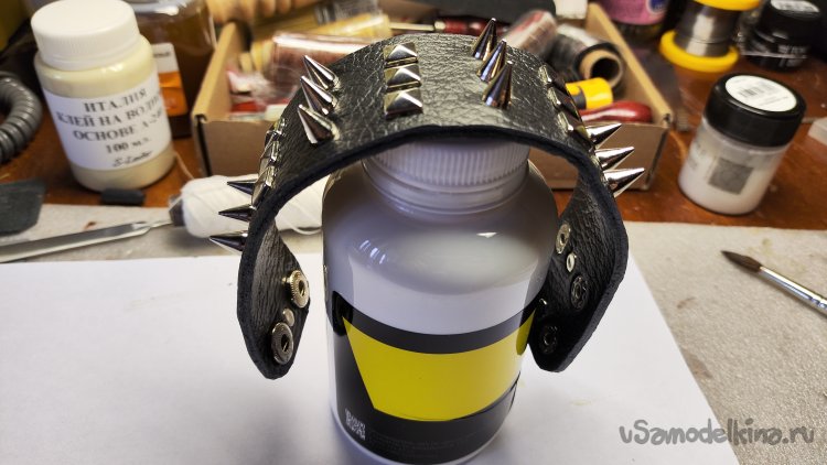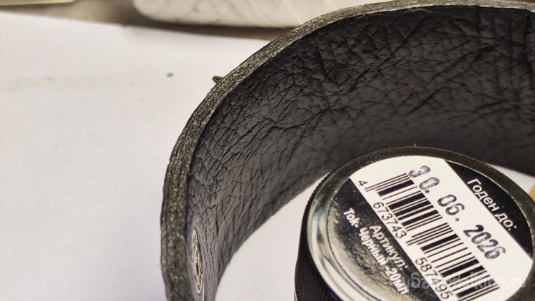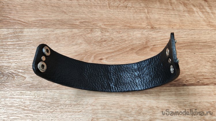 Вроде все хорошо, но я не учел один момент. Во время примерки я не учел уменьшение внутреннего диаметра, которое получилось после приклеивания внутреннего слоя. Поэтому при застегивании на один размер браслет мне немного маловат, а на второй размер излишне великоват. Но это положительный опыт, которым я буду пользоваться в будущих проектах.