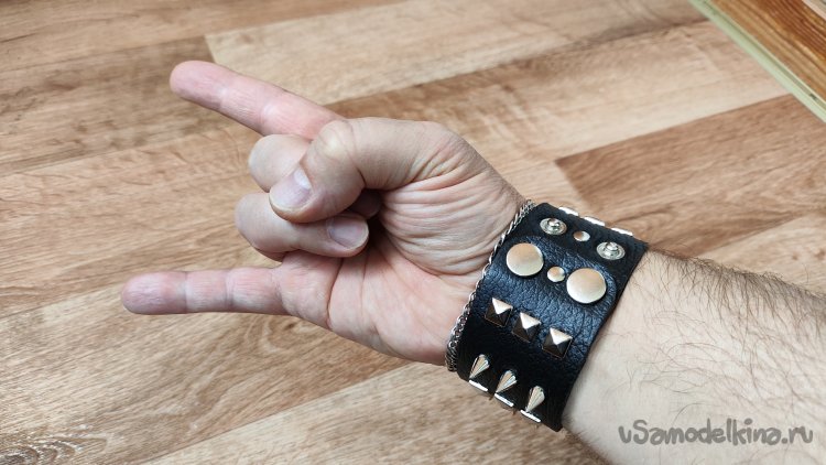 Черная кожа как никакая другая подходит для атрибутики роковой направленности. Черная кожа и шипы всегда выглядели ярко и брутально. Поэтому сегодня мы сделаем браслет в стиле «Heavy Metal». Возможно, более жесткая кожа лучше подойдет для этих целей, чем та, которая есть у меня, но мы схитрим и сделаем браслет, склеенный из двух слоев кожи. Это придаст браслету необходимую жесткость и толщину, а так же скроет обратную сторону крепления деталей фурнитуры браслета.