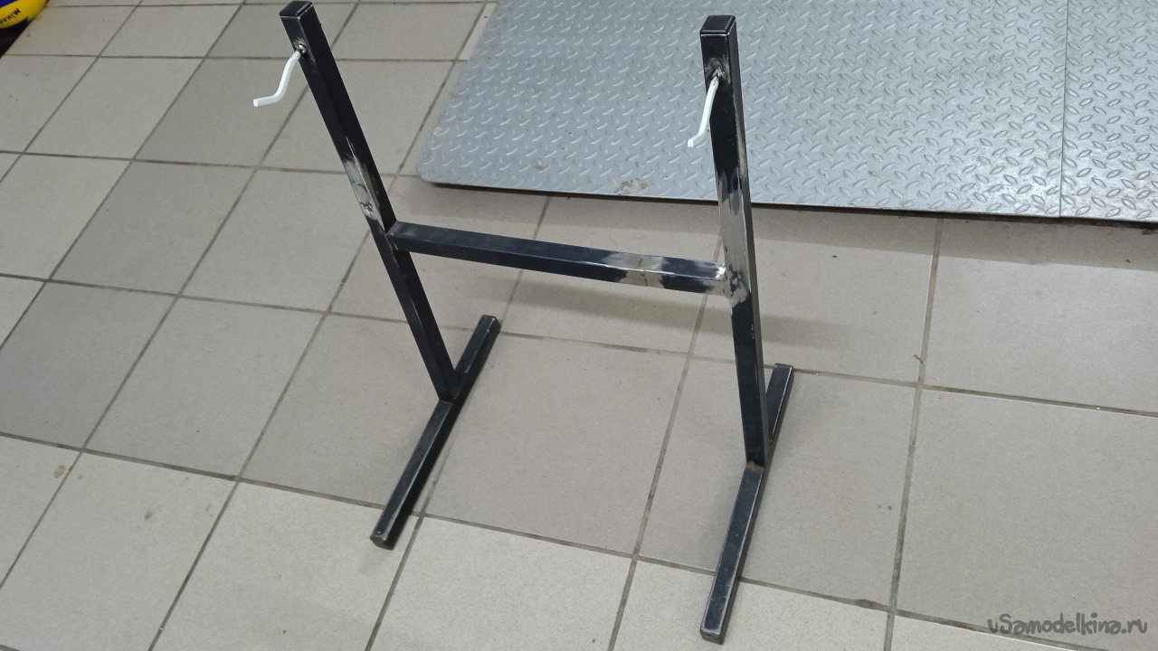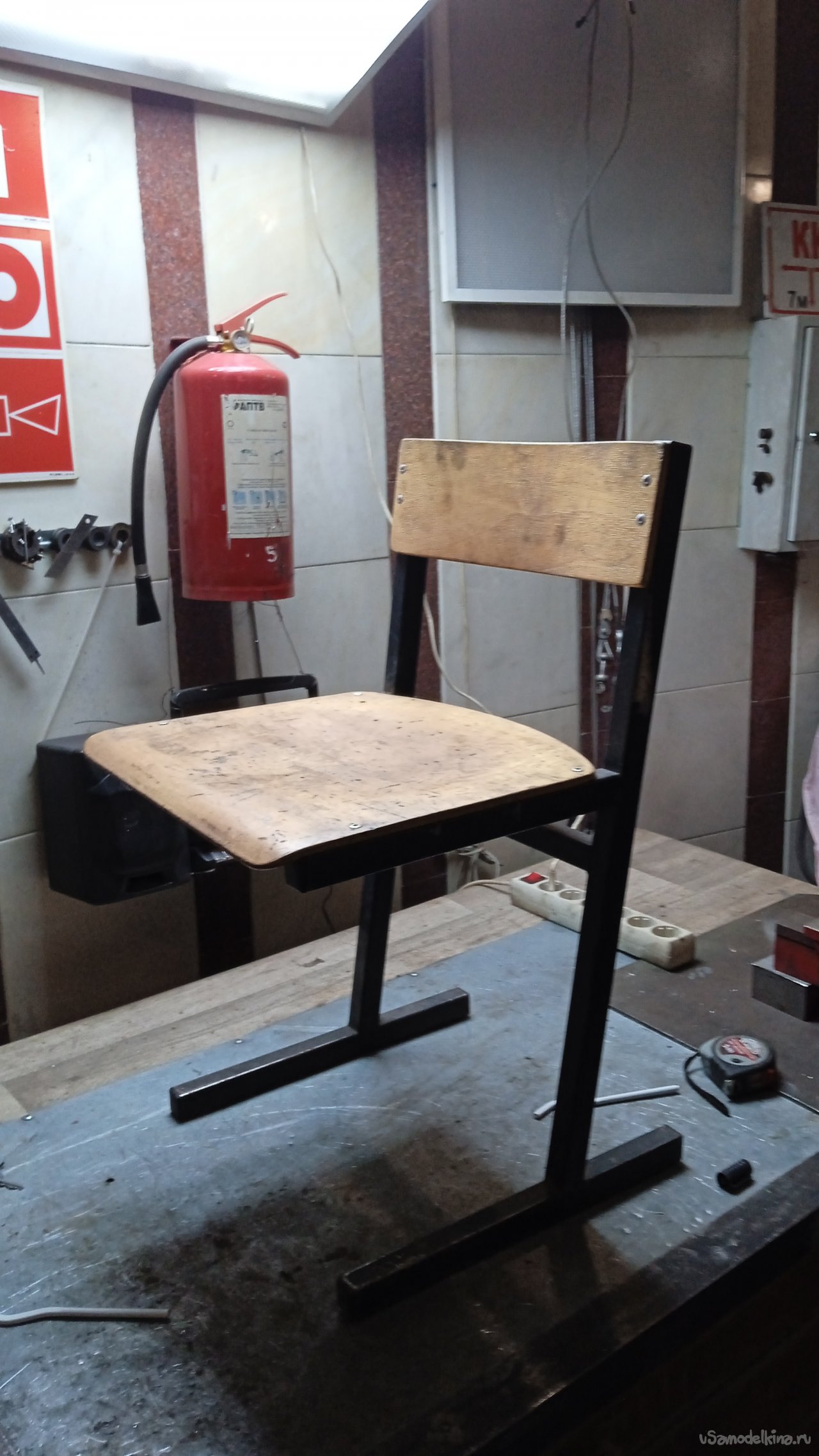 Посмотрел в специализированных магазинах подставку под радиатор и что-то захотелось самому ее «заколхозить», потому что все ненадежным показалось и конструктивно не подходило. Взял старый стул с металлическим каркасом, «поколдовал» над ним, приварил заводские кронштейны для радиатора, примерил и покрасил. Получилось симпатично и надежно, на мой взгляд.