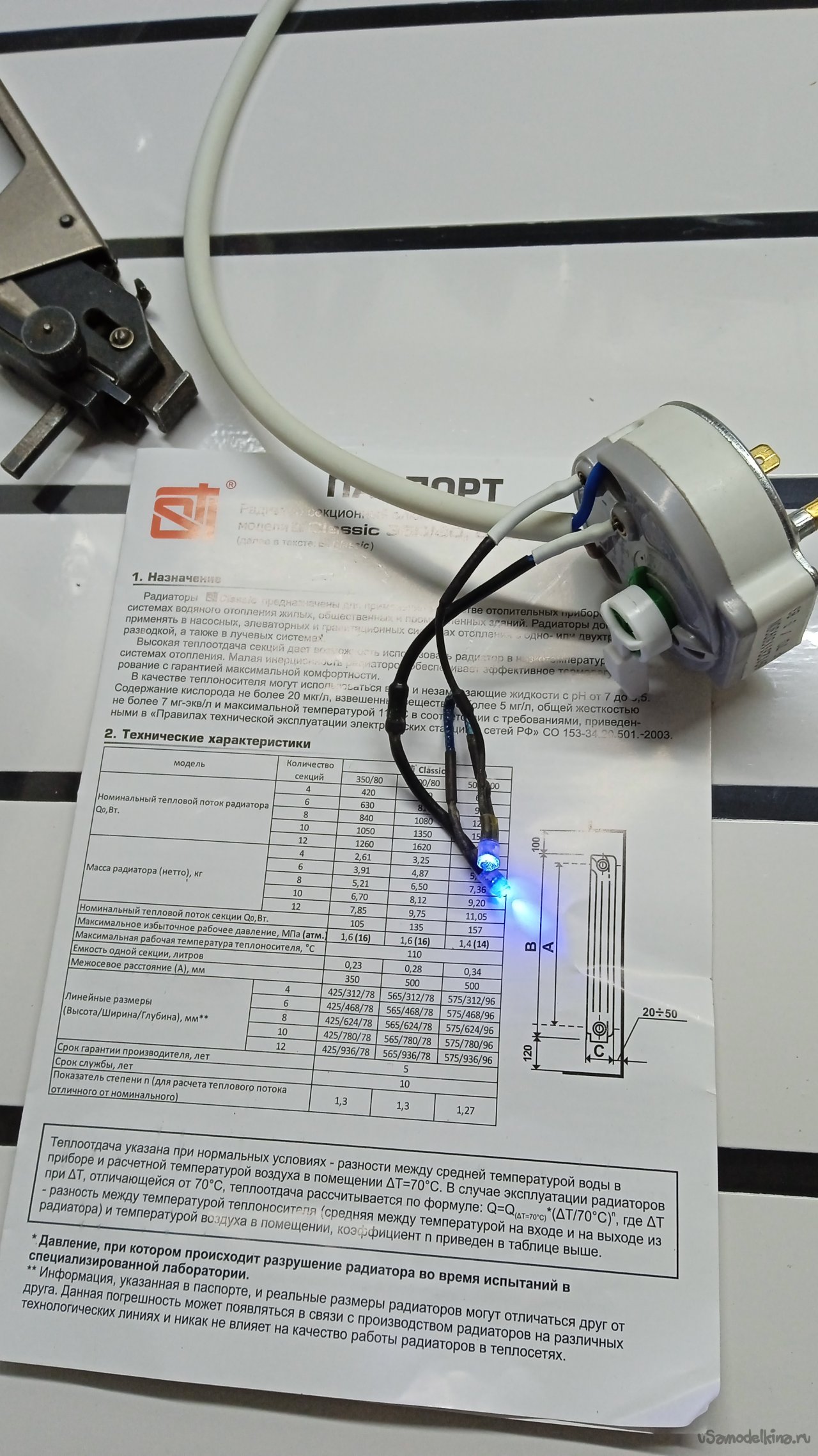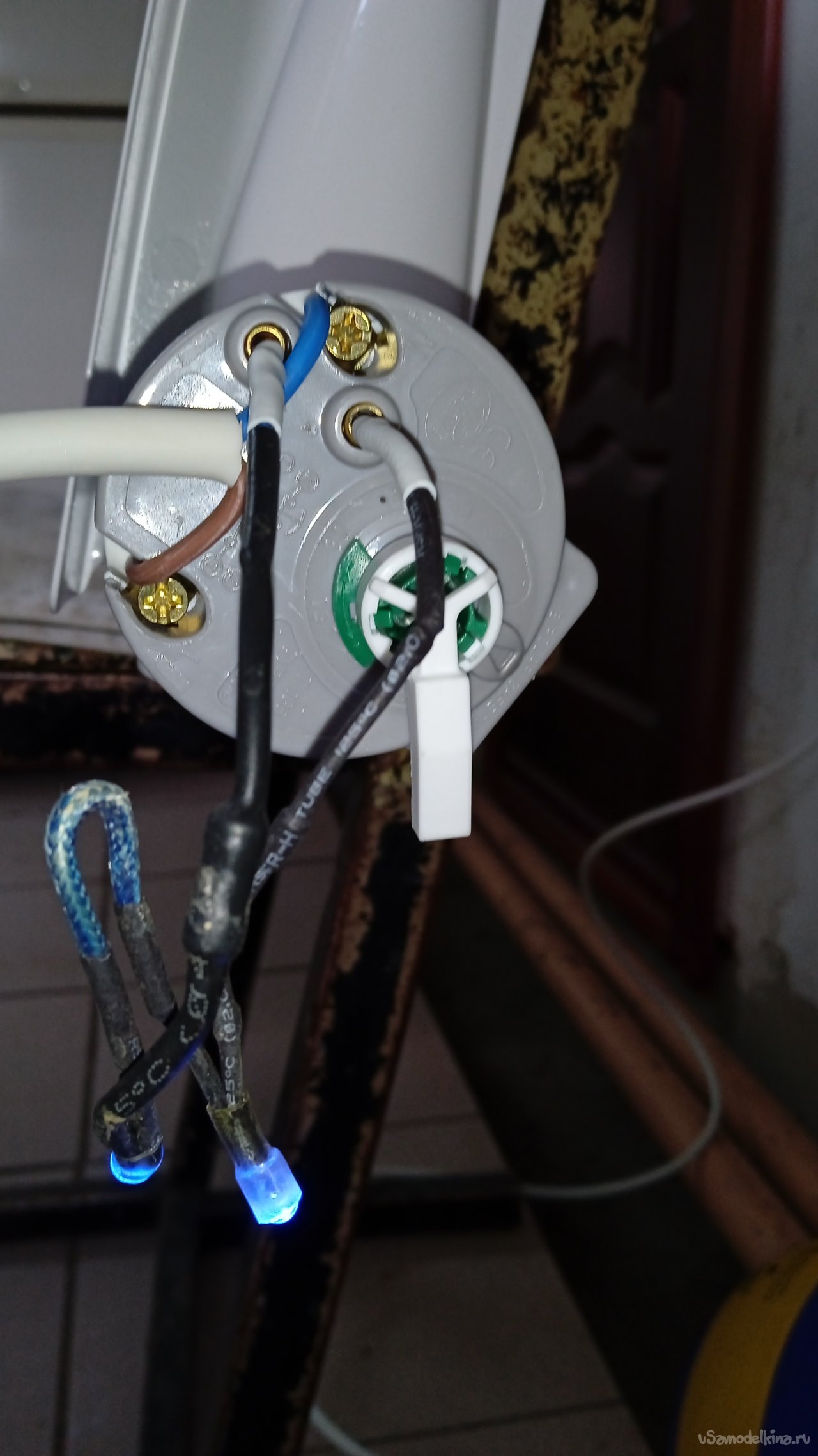 Кабель и вилка нашлись в личном хозяйстве. Так же в запчастях от электрики, нашлись светодиоды, от перегоревшего электрочайника. К термопаре, произвел монтаж питающей электропроводки с индикацией.