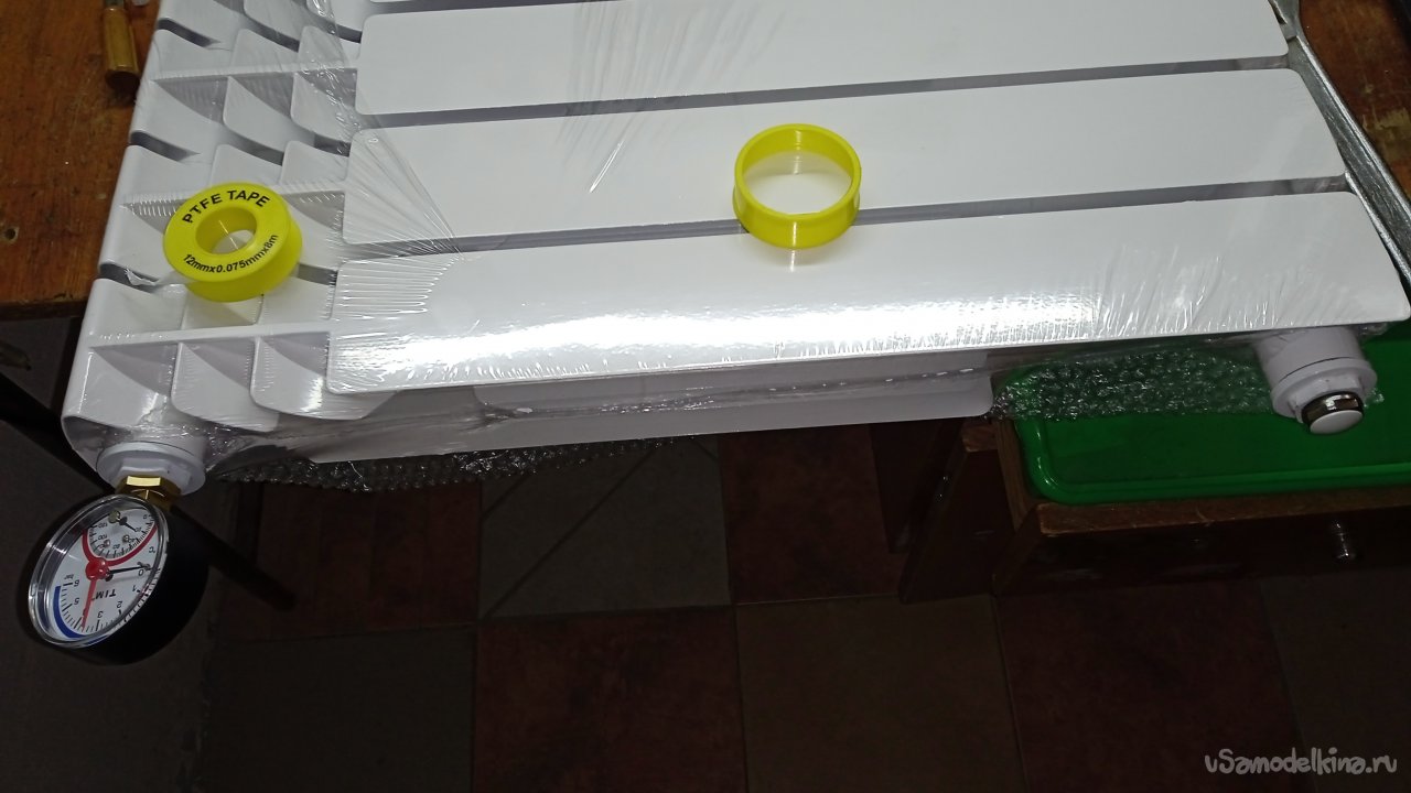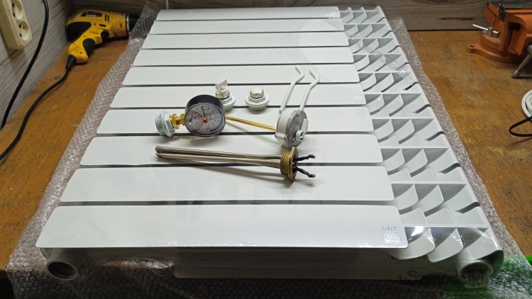 На онлайн площадках, по «удобной» цене, приобрел алюминиевый радиатор на 10 секций, ТЭН 300 ватт, с правой резьбой + термопара и манометр – термометр, с переходником на 1\2.