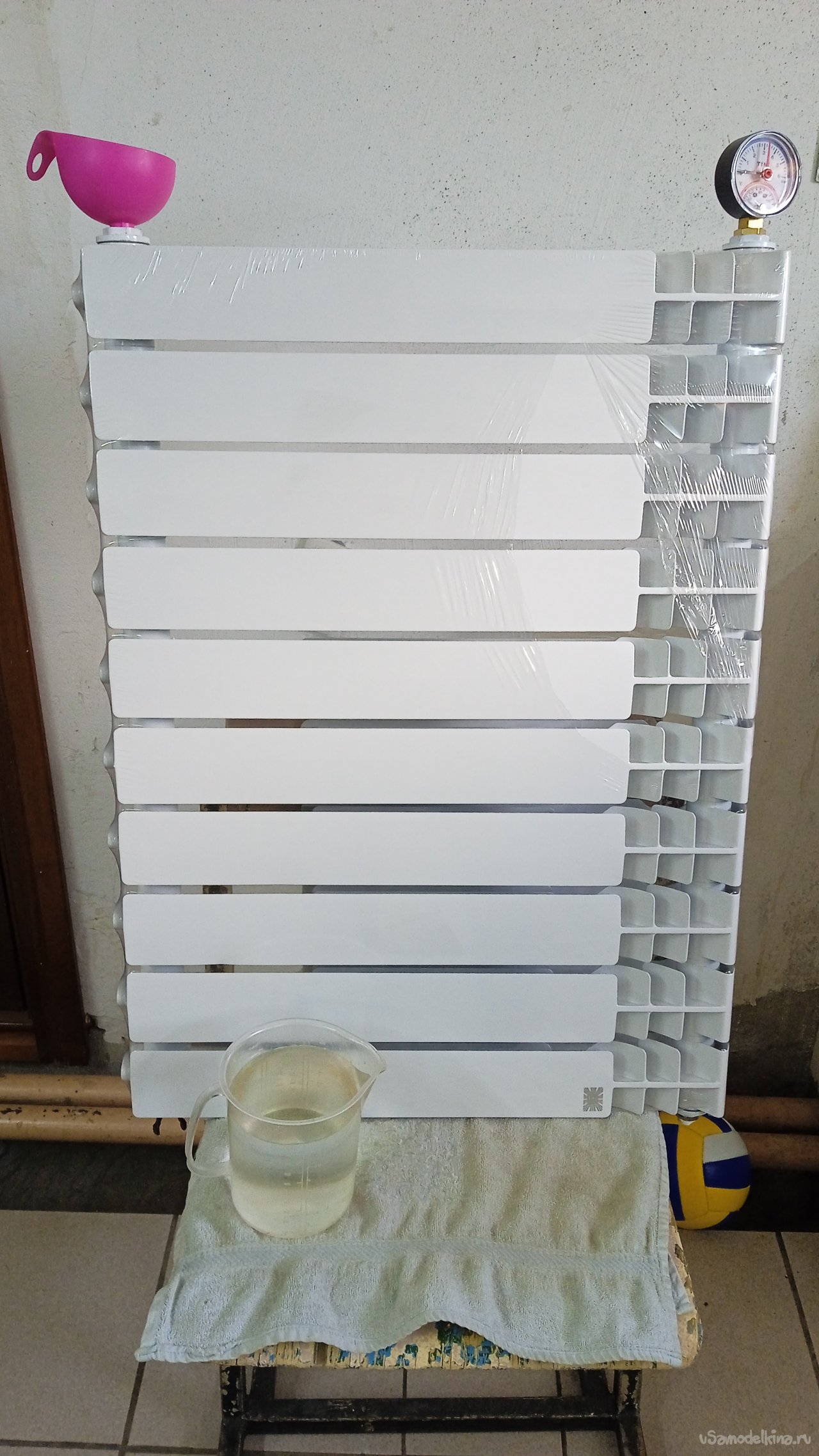 Слил воду с радиатора. Залил теплоноситель, подключил и ох…