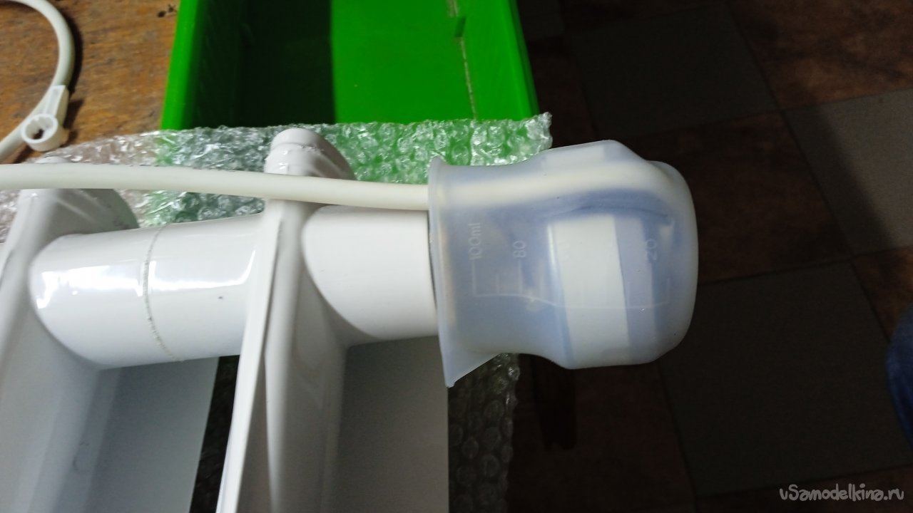 Долго думал, чем бы закрыть термопару с проводами и частью ТЭНа. Искал на онлайн площадках какие-нибудь силиконовые колпачки или формочки, а наткнулся на силиконовый мерный стаканчик. В общем стаканчик был использован не по назначению….
