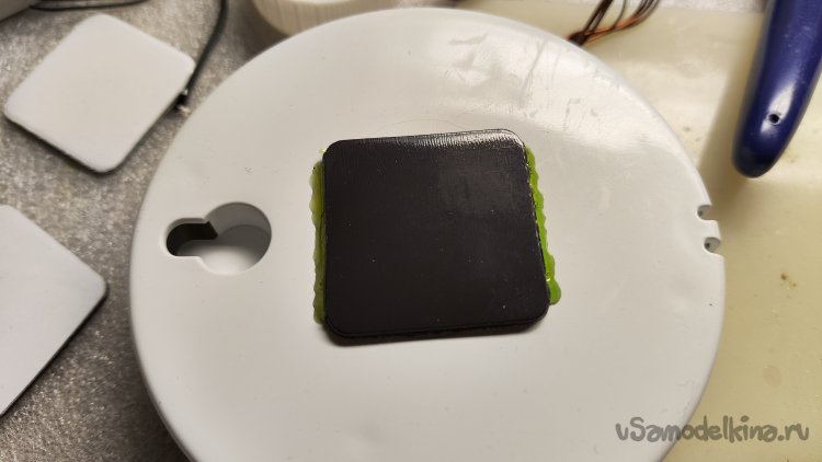 Дополнительно расплавил внутри края клея, чтобы лучше зафиксировать клей в корпусе.