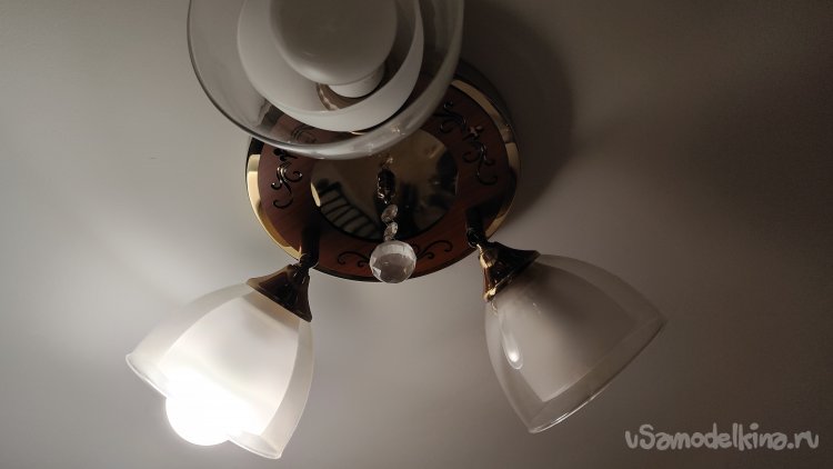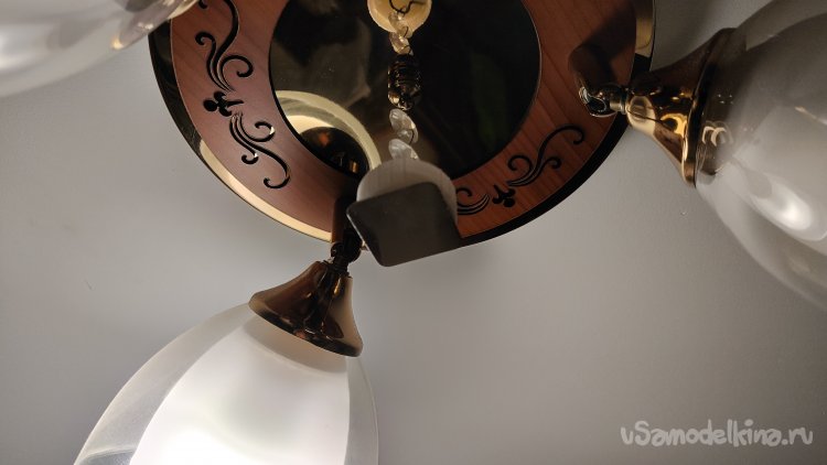 Снял светильник с кухонной люстры, будем вживлять новый аккумулятор.