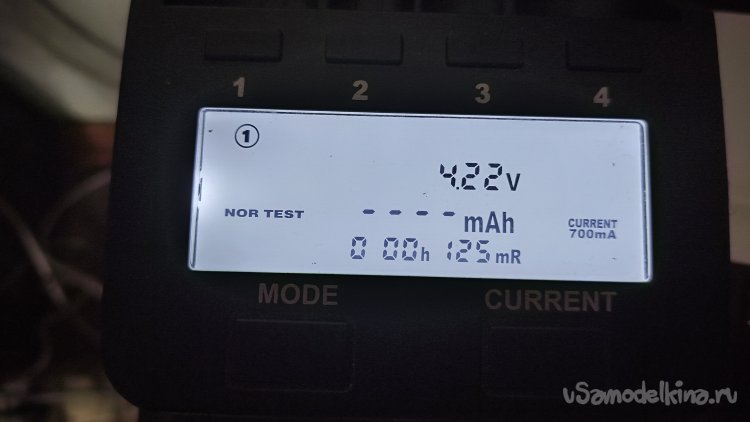 Подключаю аккумулятор. Показывает внутреннее сопротивление 114 мОм. Для такого аккумулятора это в принципе не критично.