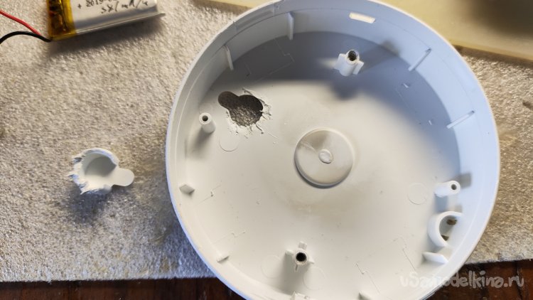 Пока проверяется аккумулятор, срезал пластик в корпусе светильника, банально откусив кусачками.
