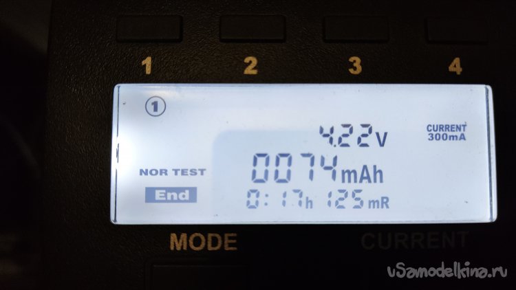 Тест закончен. Было обещано 1020 мА/ч, прибор показал 960 мА/ч, что в принципе не плохо.