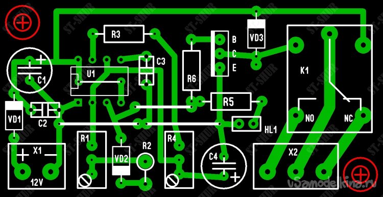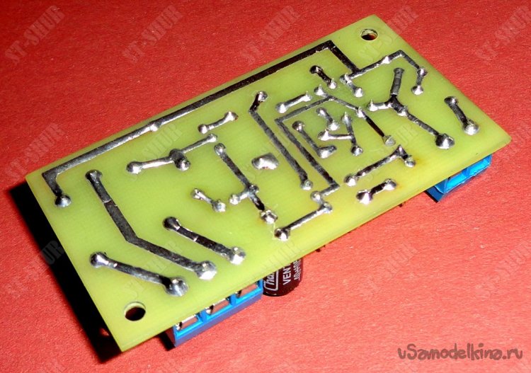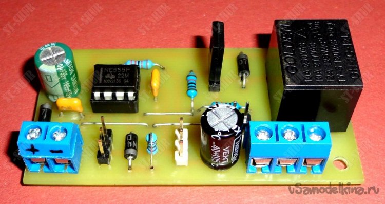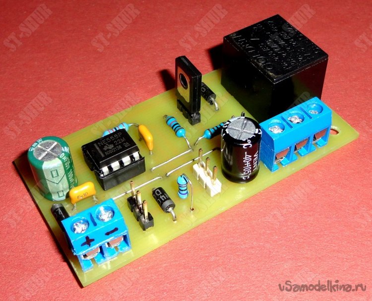 Действительно в данной схеме NE555 может прекрасно обходиться без VT1.  yes  Данный элемент установлен на случай "переезда" модуля в другие проекты. Достаточно свободный монтаж п/п предусматривает возможность установки на VT1 радиатора, что позволит  использовать модуль в "тихом режиме" (без щелчков реле) и в других проектах, без лишних переделок. Так-же были сомнения в "адекватности" NE555, приобретенных на "Али", т.к. с "волшебным" качеством р/д от китайских товарищей уже приходилось сталкиваться! Например с LM317. По этому решил слегка "переБдеть"! yes