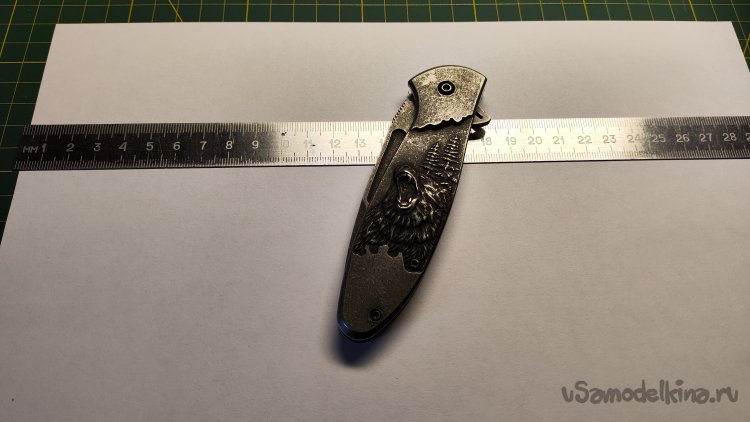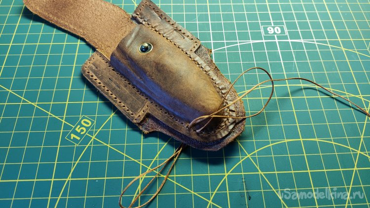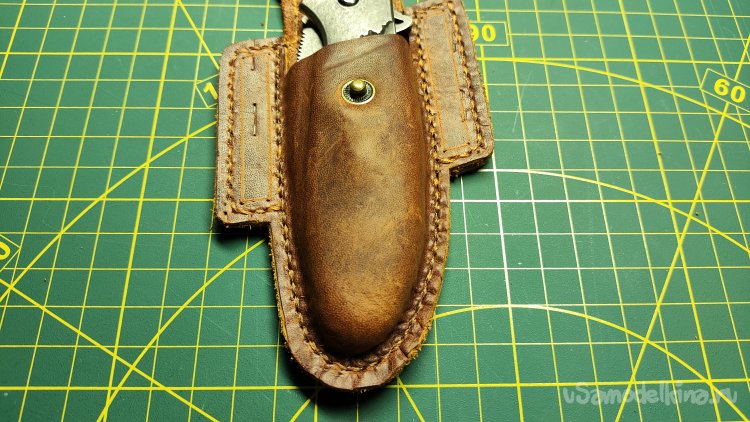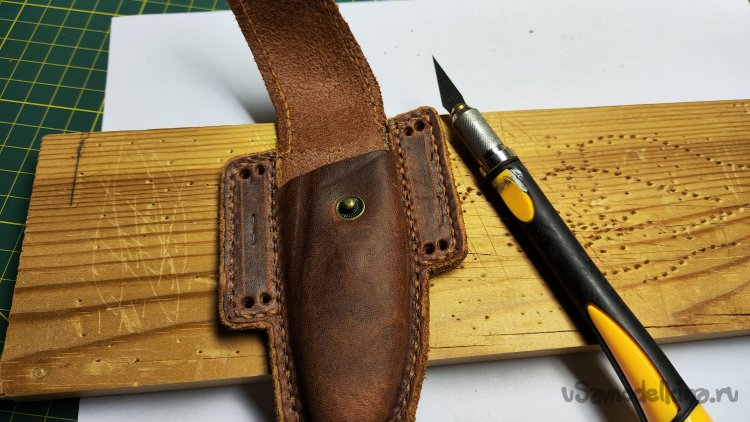 Нарисовал горизонтальную линию реза под выступающей из чехла части ножа.