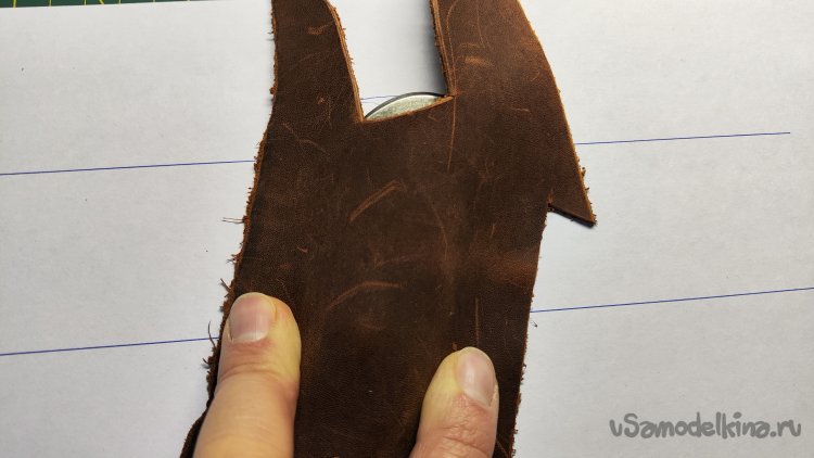 От куска кожи отрезал лишнее.