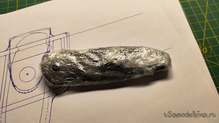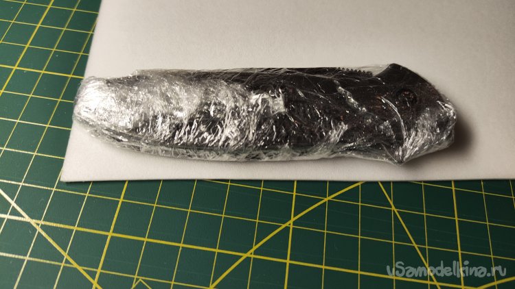 Оборачиваю нож пищевой пленкой, для защиты его от влажной кожи во время формовки.