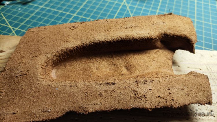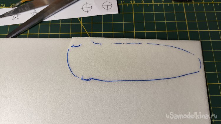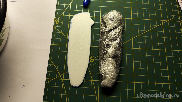 Из куска вспенки хочу вырезать подлодку под нож. Это необходимо для того, чтобы компенсировать усадку кожи после формовки.