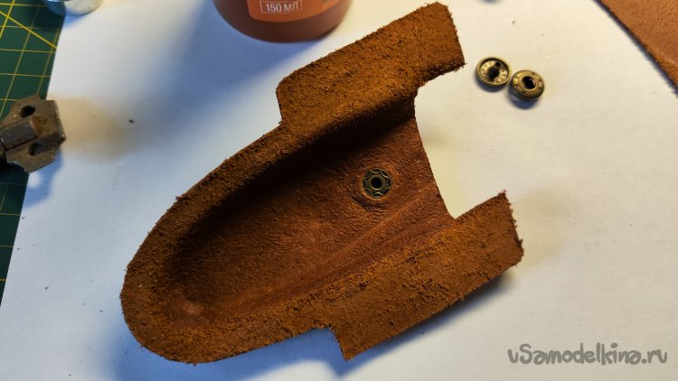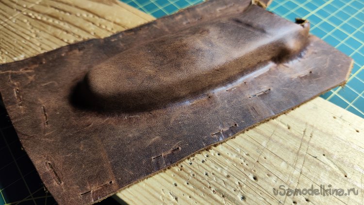 С помощью сликера формую кожу, вдавливая ее по периметру ножа.