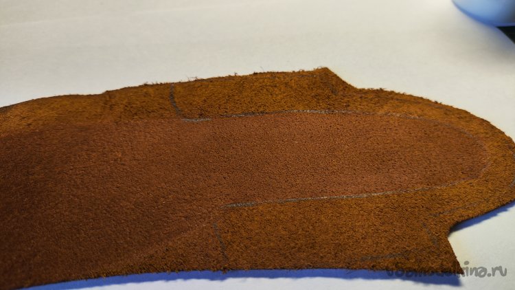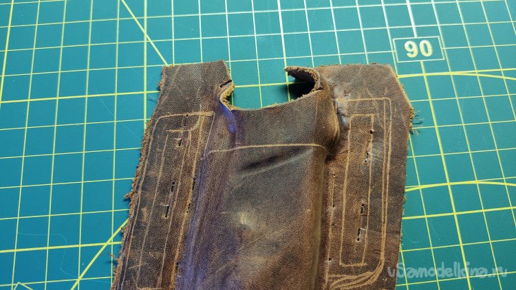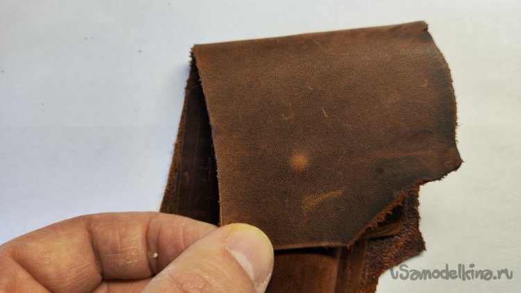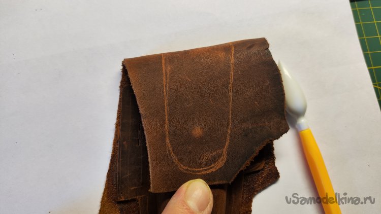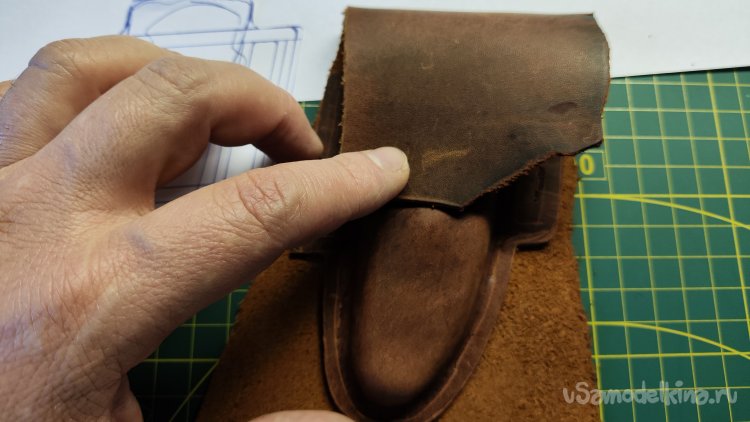 Примеряю кусок кожи. Для верхней части чехла ее хватает.