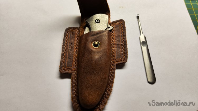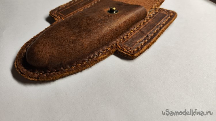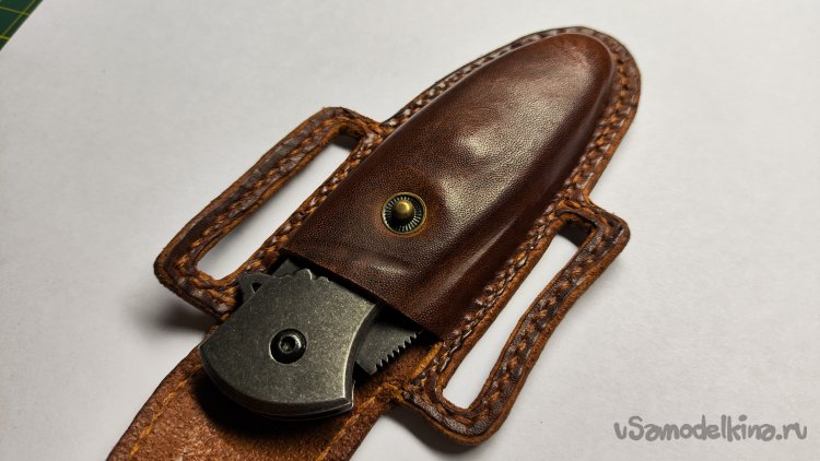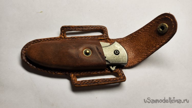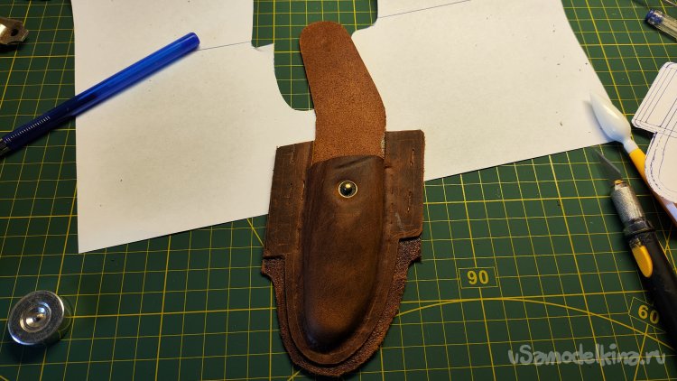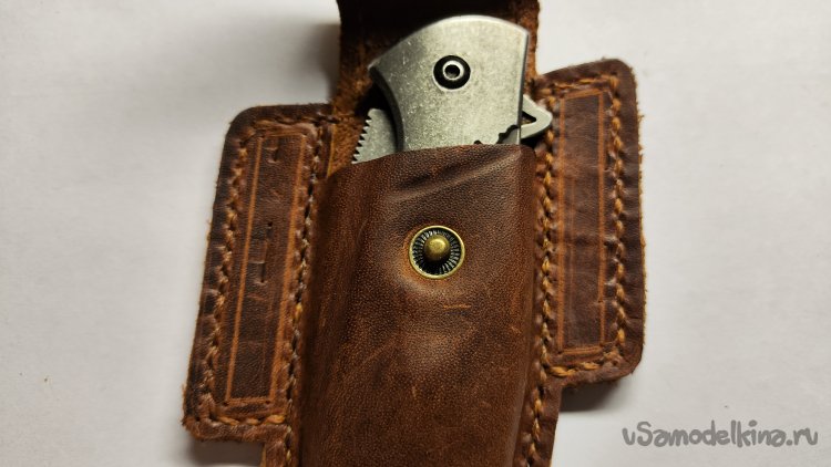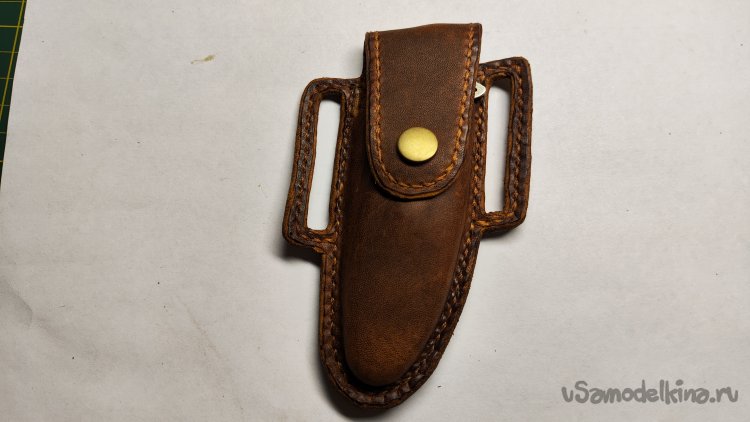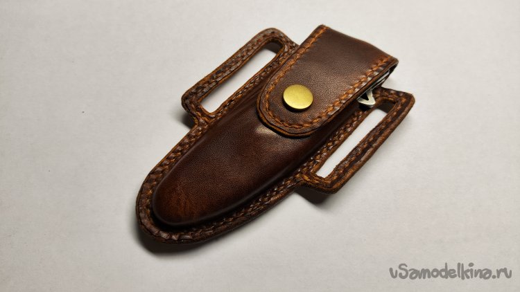 Опыт изготовления изделий из кожи на заказ меня ничему не научил. Очередной заказ: чехол для раскладного ножа. Для начала обговорил с заказчиком модель чехла. У заказчика было только одно условие, чтобы изделие закрывалось на кнопку. Остальное предложил я, опираясь на модели из интернета.