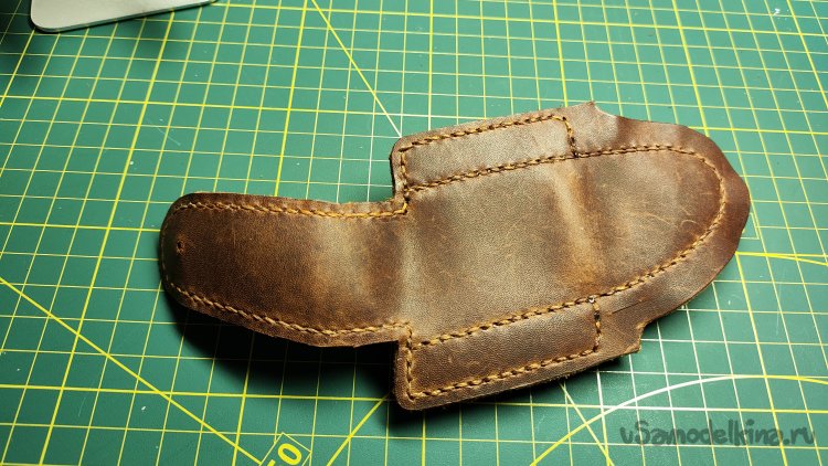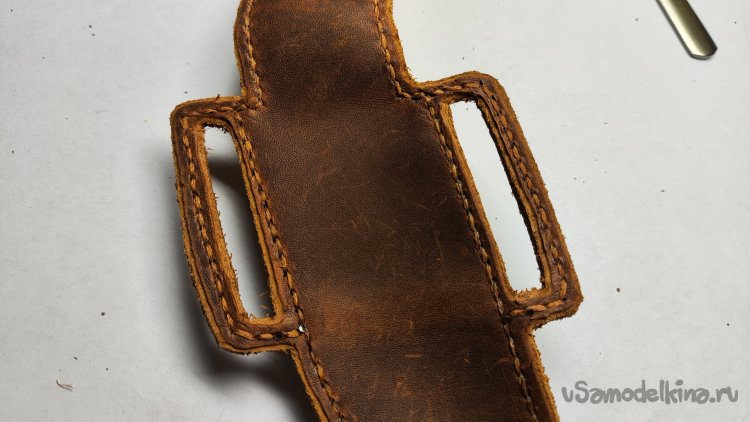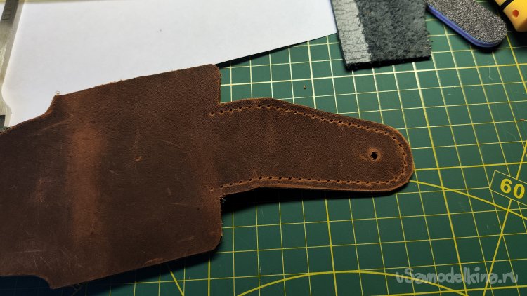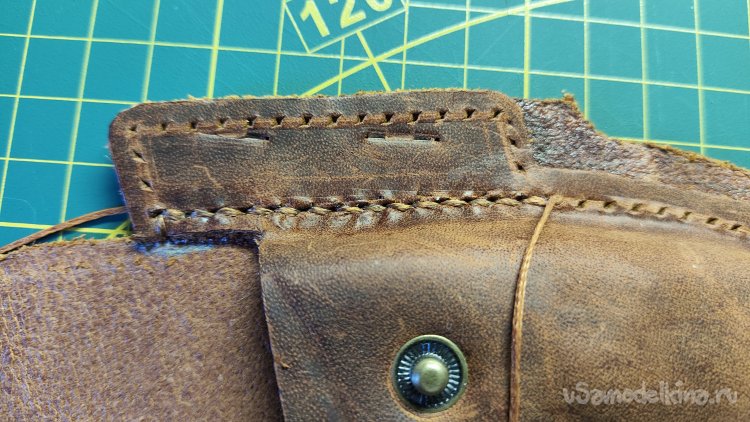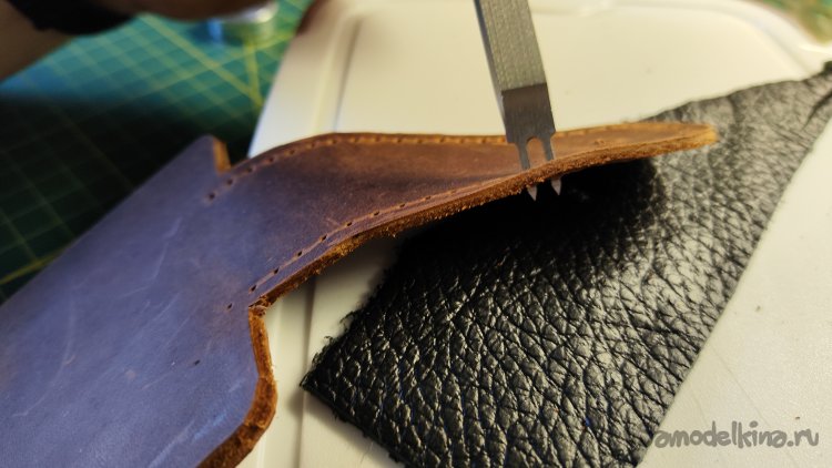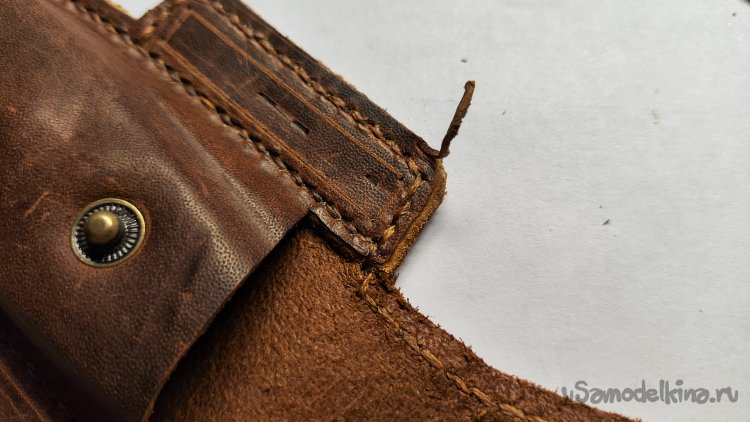 Не срезана кромка только у внутренней стороны клапана. Кожа не толстая, это не требуется. Постараюсь закруглить внутреннюю кромку сликером.