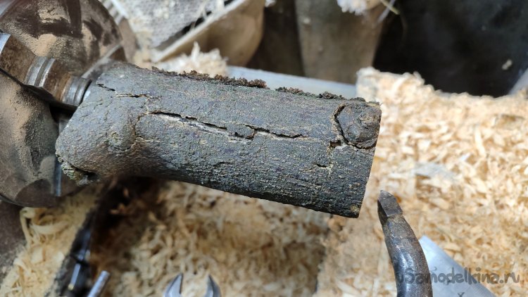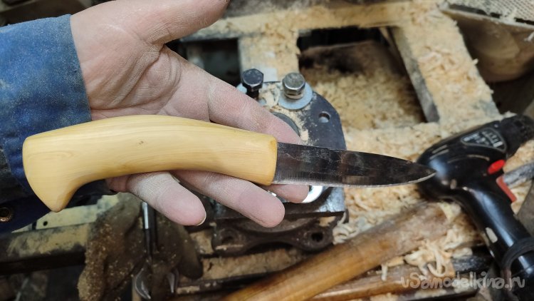 Для рукояток использовал ветку мандаринового дерева. Деревце погибло после наводнения, просто решил попробовать из него сделать рукоятки, думал будет посветлее текстура, но ничего примечательного не получилось, обычная текстура невыразительная, только при точении ощущался мандариновый запах.